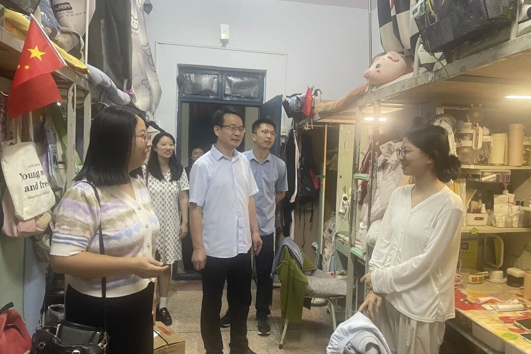 9月2日,学院领导、辅导员一行走访学生宿舍。走访过程中,学院领导与同学们进行了亲切交谈,细致询问了大家暑期生活、返校过程以及新学期的学习规划与目标,耐心听取了同学们对于宿舍环境、生活设施等方面的意见和建议。曹书记叮嘱同学们要尽快调整状态,适应新学期校园生活节奏,养成良好的生活作息习惯,营造积极向上、整洁和谐的宿舍氛围。韩院长勉励同学们要珍惜时光,夯实专业基础,提升综合素养,以饱满的热情投入到新学期的学习科研中去。此外,辅导员们还特别提醒同学们要增强安全意识,注意人身财产安全及用电安全,共同维护校园安全稳定。