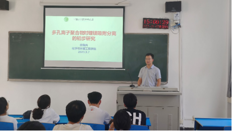 9月7日下午3时,williamhill中文白瑞兵博士在4111教室举办学术讲座,报告题目为《多孔离子聚合物对锂镁吸附分离的初步研究》,我院22级材料科学与工程专业同学聆听了报告。