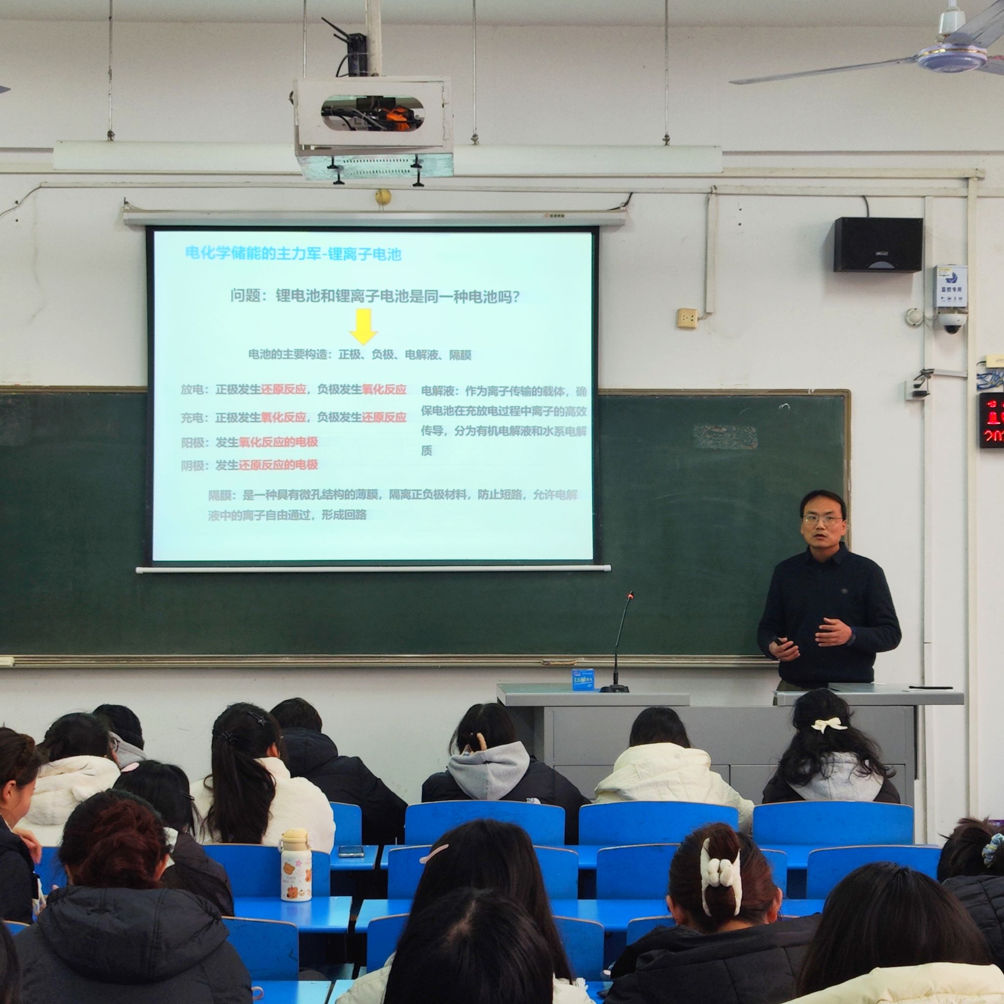 我院吴华涛博士于2024年12月26日下午15:00在4号教学楼4113教室进行题为《化学储能装置-锂离子电池篇》的学术报告,2022级化学2班的40同学参加了此次学术活动。
