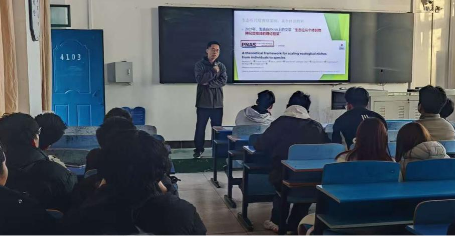 11月27日,williamhill中文齐光博士在4103教室举办学术讲座,报告题目为《生态位从个体到物种的尺度推绎》,我院24、25级环境生态工程专业同学聆听了报告。