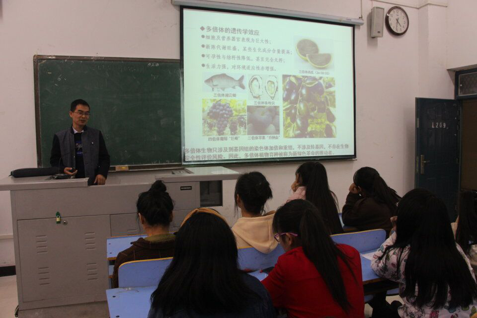 此次讲座程教授围绕生物育种的重要性、细胞工程与育种、组学技术与育种三个方面讲解。程教授指出,生物育种的必要性在于人类21世纪面临的三大问题、传统育种方法的局限和生物技术的创造性,技术不断在革新,科学研究需要更高层次的技术支持。接着程老师向同学们介绍了以细胞工程、基因工程、分子标记辅助育种为核心的生物技术在植物育种中已得到广泛应用。程老师还向同学们讲解了组学技术在实验室研究中的部分应用转录组、蛋白组和代谢组。报告最后,程老师希望同学们能树立自己的人生理想,明确自己的努力目标,有计划的大量阅读专业和非专业文献,鼓励同学们走进实验室,找到适合自己的人生方向。