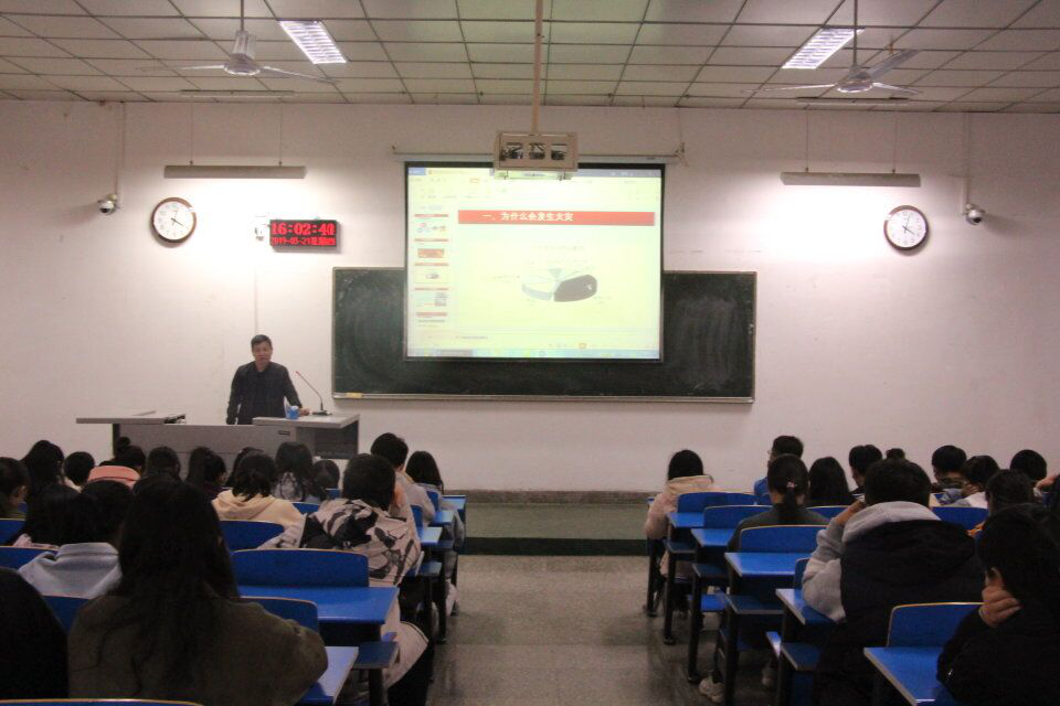 3月21日下午,williamhill中文在4306教室举办“关注校园消防安全,构建平安和谐校园”消防安全知识讲座。活动邀请保卫处科长郝新喜做专题讲座。我院18级同学参加讲座。