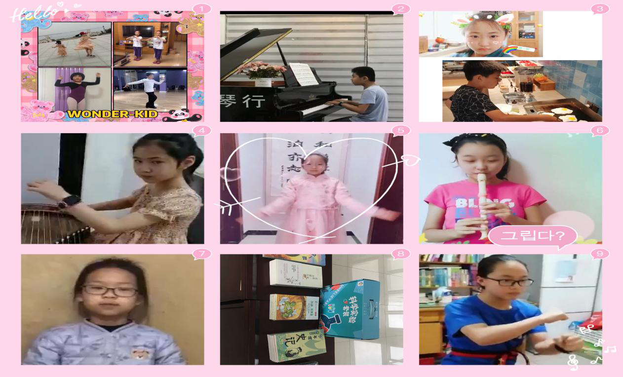 此次活动以教职工家庭为单位,将孩子们的才艺以视频或图片的形式通过美篇进行展示,教职工们积极准备,踊跃报名,累计收到70份展示作品,孩子们的才艺展示类别各异,各有特色:有钢琴、笛子、古筝等乐器类表演;有独唱、戏曲、舞蹈、等曲艺类表演;有武术、跆拳道等的体育类表演;有诗词诵读、演讲、等语言类表演;有简笔画、水彩画、素描、粘土画、书法等作品展示。