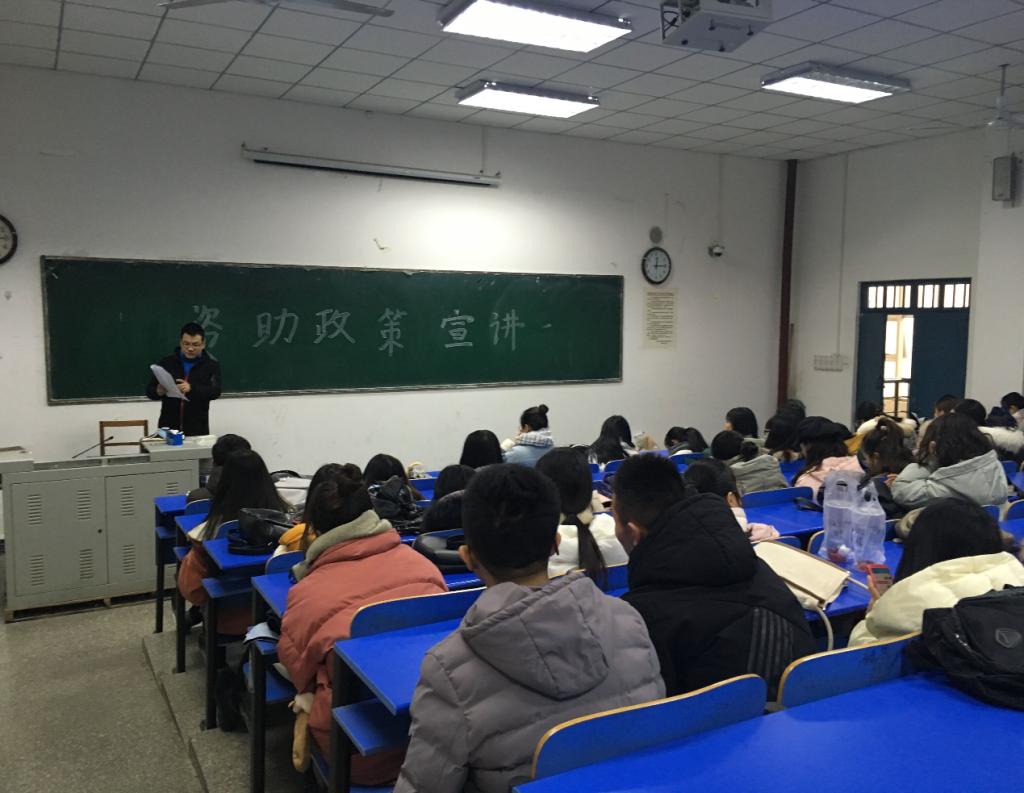 12月27日中午,williamhill中文在3306教室举行了资助政策宣讲课,由师广岭老师主讲。
