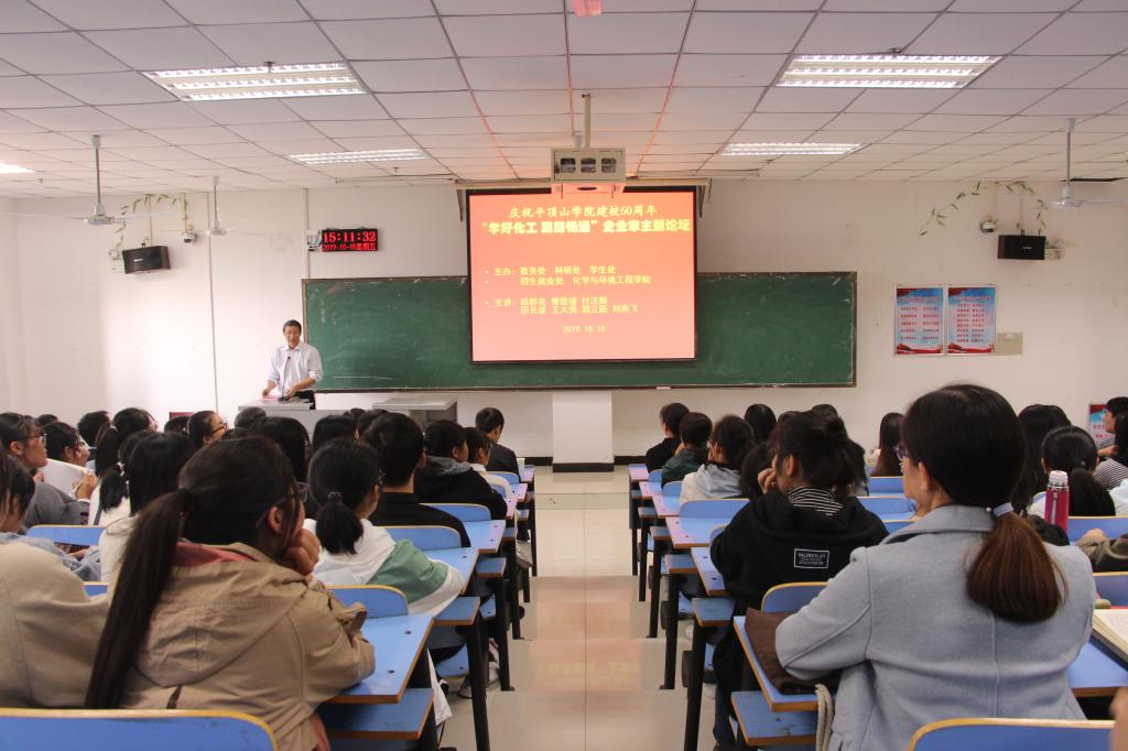 为庆祝威廉官网中国建校60周年,由教务处、科研处、学生处、招生就业处、williamhill中文共同主办的“学好化工 前路畅通”企业家主题论坛于10月18日下午在图书馆411教室举行。下午三点,活动正式开始,教室内座无虚席,过道、窗外听众爆满,来自化学工程与工艺、材料科学与工程等专业的200多名师生参加了活动。