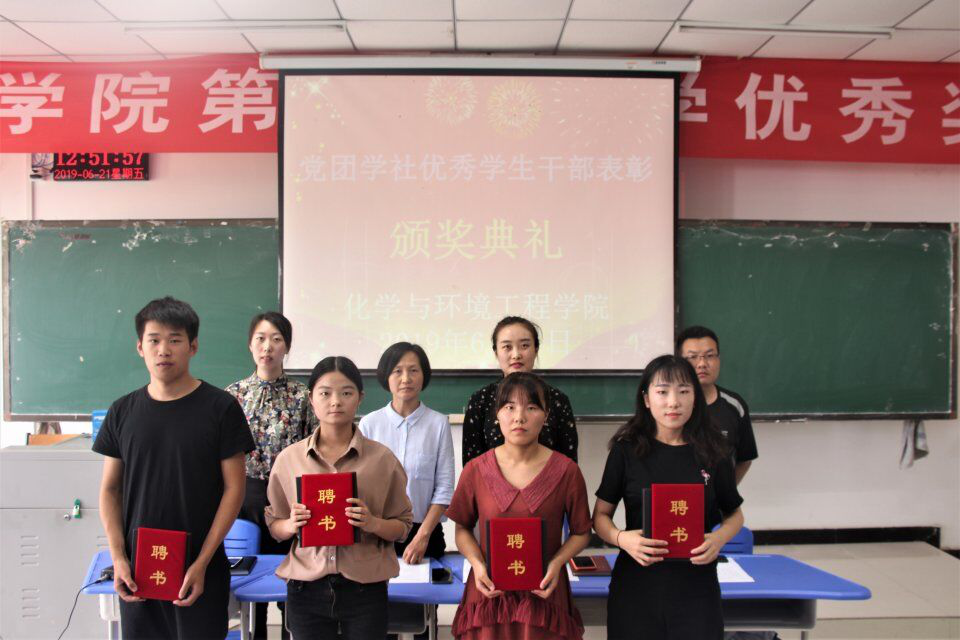 6月21日,williamhill中文在L211举行2018-2019学年党团学社换届暨优秀学生干部表彰大会。党总支副书记孙学荣、辅导员罗世颖、史小倩、师广岭,以及党团学社新老成员参加了此次会议。
