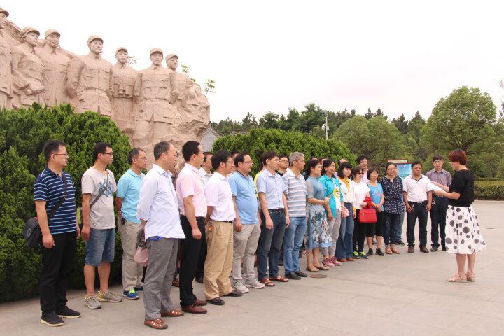 去往目的地途中,党总支书记李青彬说明了此次党日活动的行程安排,强调了八项规定,并带领大家合唱《没有共产党就没有新中国》。在桐柏革命纪念馆的英雄雕像前,腊明老师带领大家学习《纪念白求恩》的文章。在桐柏红色廉政文化展馆,全体党员重温入党誓词,宣读廉政宣言。