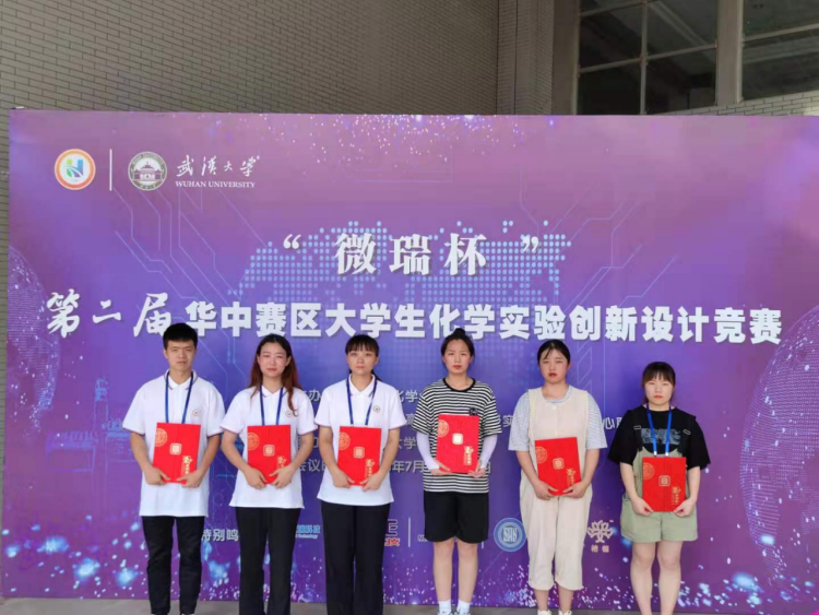 7月24日至25日,由教育部高等学校化学类专业教学指导委员会和高等学校国家级实验教学示范中心联席会主办、武汉大学承办的“微瑞杯”第二届全国大学生化学实验创新设计竞赛(华中赛区)举行,来自中国科学技术大学、武汉大学、中国地质大学、华中师范大学、郑州大学、安徽师范大学等华中地区的69所高校、164支代表队参赛。由我院学生组成的两支队伍代表威廉官网中国参加了此次比赛。