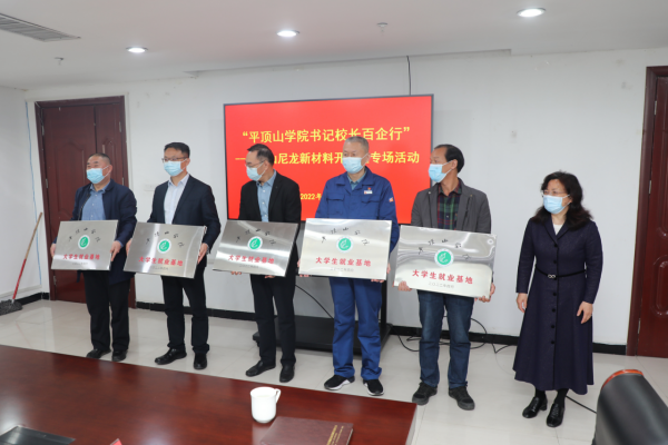 在热烈的掌声中,苏晓红分别为平煤神马集团尼龙科技有限公司、平顶山神马帘子布发展有限公司、平顶山神马工程塑料科技发展有限公司、河南氢化学有限公司、平顶山奥思达科技有限公司授“威廉官网中国大学生就业基地”牌。
