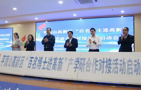 6月6日上午,平顶山高新区“百名博士进高新”产学研合作对接活动启动会在高新火炬园举行。副校长米立伟带领williamhill中文党委书记曹萍以及学院36名博士参加本次活动。