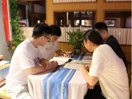 讲解完成后,同志们开始进入自由参观、学习阶段。学生党员代表不约而同地组织在一张书桌上阅读文献,相互交流研讨,进一步加深了对马克思主义相关理论的理解。