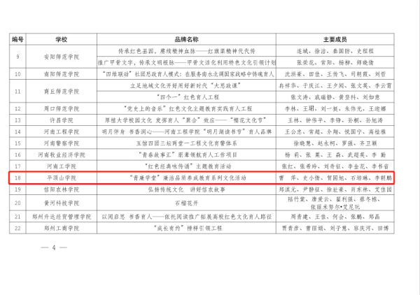 本次评选由中共河南省教育工委办公室、河南省教育厅办公室发起,经各高校推荐、专家评审、综合评议等环节,评选出来自全省高校优秀成果160项。《“青廉学堂”廉洁品质养成教育系列文化活动》品牌通过在师生中开展廉洁文化教育系列活动,把中国传统文化、专业教育、党史教育与当代大学生廉洁教育相结合,以文化活动为载体,培养大学生的倡廉崇洁美德,实现了廉洁文化立体式的传播和影响。
