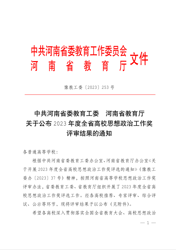 近日,中共河南省委教育工委、河南省教育厅公布了2023年度全省高校思想政治工作优秀品牌评审结果,我校williamhill中文主持培育的《“青廉学堂”廉洁品质养成教育系列文化活动》荣获2023年度全省高校思想政治工作优秀品牌。