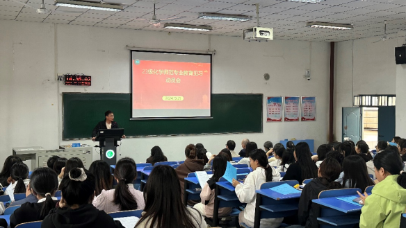 为培养化学师范专业学生教育情怀,提升专业素质和实践教学能力,10月31日下午2:30,2023级化学专业全体学生与化学教研室见习带队老师于3号教学楼3106开展化学专业2023级教育见习动员大会。参会的带队老师有教学办主任李伟利、化学教研室主任马洋洋、化学教研室刘巧茹、田正山、李付安、潘自红、王亚波、杜刚锋、岳欢。