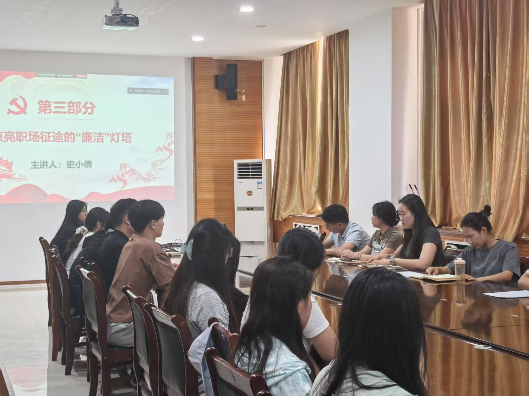 学生第一、第二党支部书记分别围绕《扣好职场第一粒扣子》、《点亮职场征途的“廉洁”灯塔》两大主题,为支部党员精心讲授党课。通过生动的案例和深入的分析,引导学生党员们认识到廉洁自律对于一名党员的重要性,鼓励他们在今后的学习和工作中,始终保持清醒的头脑,坚守廉洁底线。此外,学生党员还学习了《求是》杂志文章《激励新时代青年在中国式现代化建设中挺膺担当》,他们纷纷表示要以实际行动践行青春誓言,努力学习专业知识,提升自身综合素质,在中国式现代化建设的征程中展现新时代青年的风采。