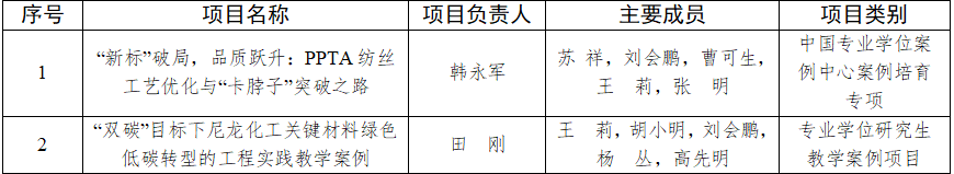 近日,河南省教育厅发布《关于公布2026年河南省研究生教育改革与质量提升工程项目(案例项目)名单的通知》(教办研〔2025〕257号),williamhill中文韩永军教授团队申报的《“新标”破局,品质跃升:PPTA纺丝工艺优化与“卡脖子”技术突破之路》项目成功获批2026年河南省中国专业学位案例中心案例培育专项项目,田刚副教授团队申报的《“双碳”目标下尼龙化工关键材料绿色低碳转型的工程实践教学案例》项目成功获批2026年河南省专业学位研究生教学案例项目。