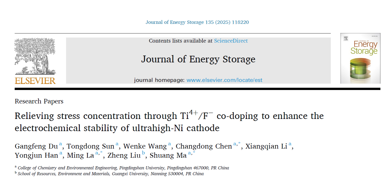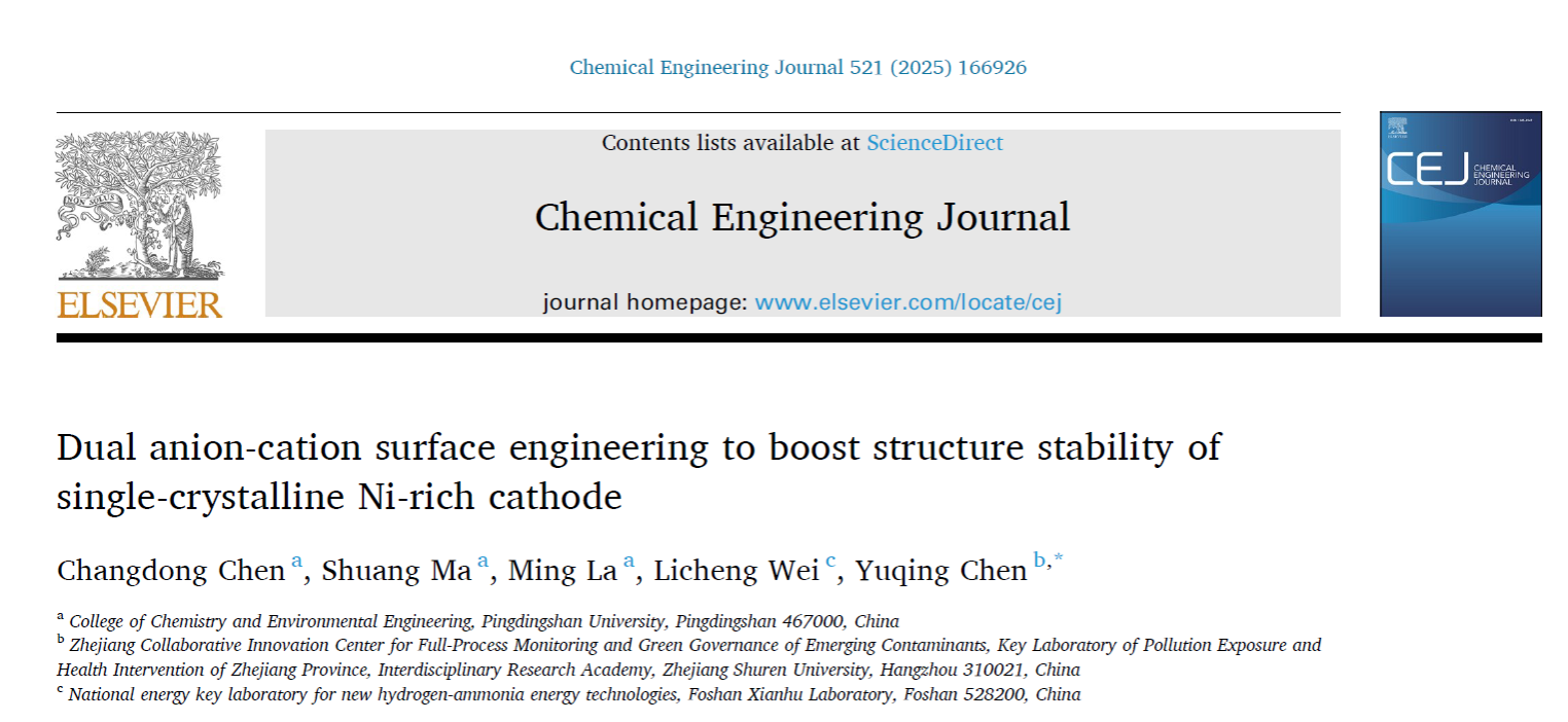 近期,我院纳米储能材料团队在能源材料领域取得系列重要进展。团队聚焦国家“双碳”战略,围绕高镍单晶电化学储能过程中的重要科学问题进行前沿性探索工作。相关研究成果以威廉官网中国为第一署名单位发在《Chemical Engineering Journal》(中科院1区,TOP期刊,影响因子13.2)和《Journal of Energy Storage》(TOP期刊,影响因子9.8)上,陈昌东博士指导的材料与化工专业2025级硕士研究生王文科也参与该项工作中,展现出我校在学生的科研素养和创新能力培养上取得了突出成效。