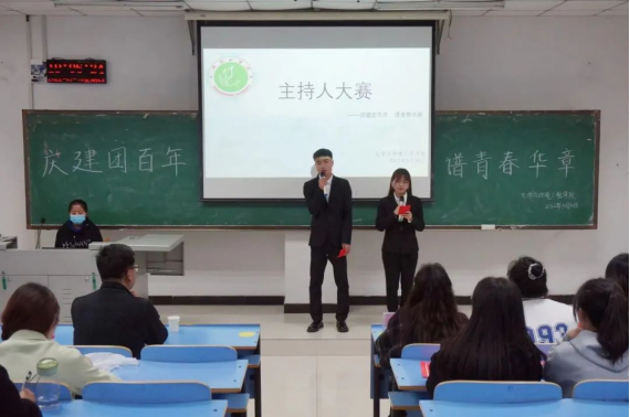 为丰富同学们的课余文化生活,展现大学生的青春风采,同时为爱好播音主持的学生提供一个展示自我的舞台,3月10日晚,我院在图书馆L411举办了以“庆建团百年,谱青春华章”为主题的“金话筒”主持人大赛初赛,我院辅导员李朝鹏、石培琳参加了本次活动。