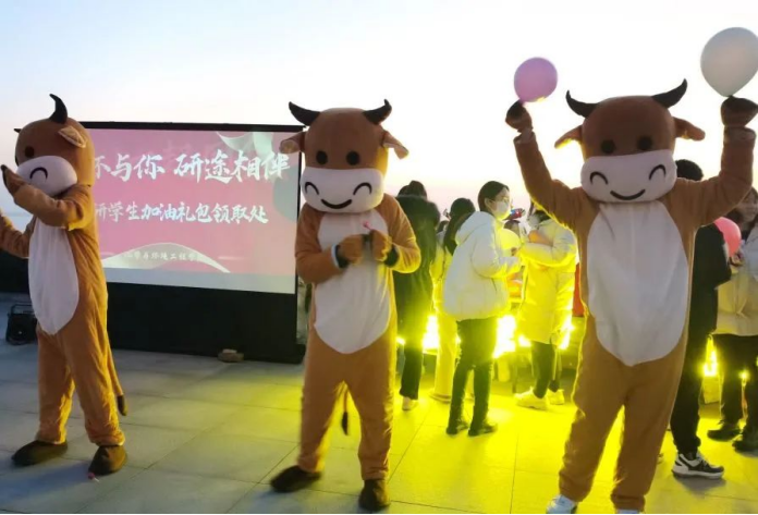 最后,史小倩老师摘下玩偶头套,为同学们送上祝福:希望同学们坚定信念,努力追求自己的青春梦想,全力以赴,争取佳绩,同时要保持积极的心态、健康的体魄去迎接最后的考试。活动最后,21级化学1班杨柳清、21级材料1班石若琳等四名学生带领大家合唱《夜空中最亮的星》、《没有什么不同》,为考研学子助力,活动在优美欢快的旋律中落下帷幕。