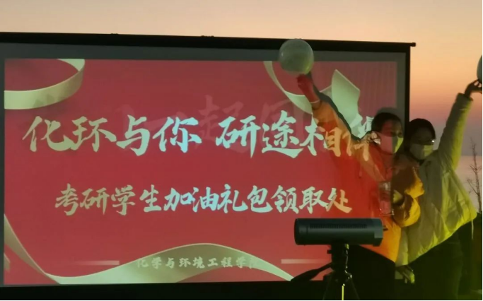日历一张张翻过,2022年全国硕士研究生考试逐渐临近,到了最后的冲刺阶段,为表达对18级考研学生的关心与慰问,缓解学生们的备考压力,12月19日下午,我院在图书馆南门举办了为考研学子送温暖活动。此次活动以“化环与你,沿途相伴”为主题,由我院党团学社工作人员组织,为考研学生送去暖心“三件套”祝福大礼包,我院党委副书记贺国旭、辅导员史小倩、石培琳老师参加了本次活动。