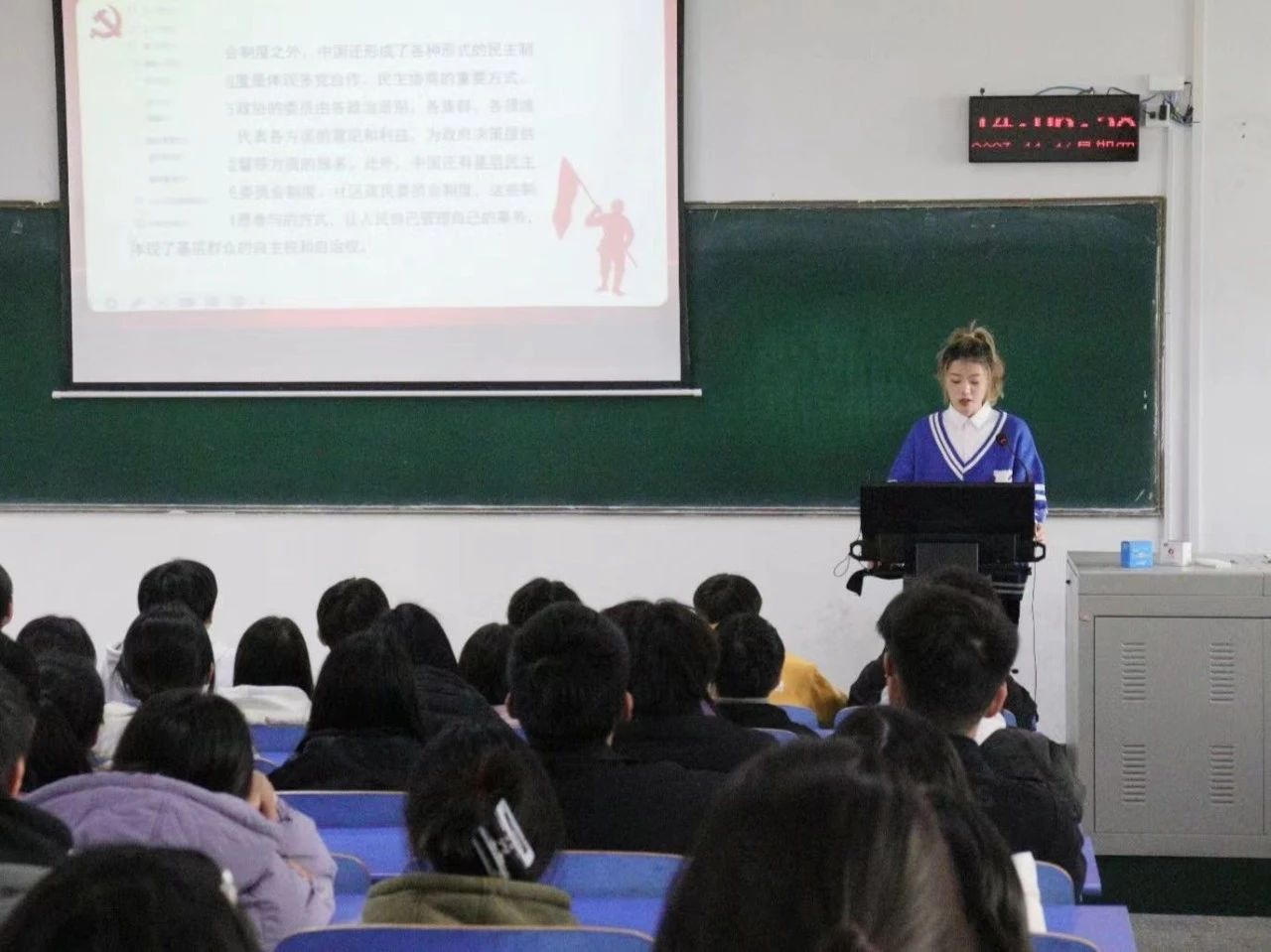 在宣讲教育过程中,主讲人首先向同学们介绍了全过程人民民主制度体系和全过程人民民主理论体系的基本内容,并着重强调:全过程人民民主制度体系是以人民为主体,涵盖一系列关于议政、决策、执行、监督等环节的体制机制。全过程人民民主的根本基础和核心价值是坚持以人民为中心,全过程人民民主,是近代以来党团结带领人民长期奋斗的历史逻辑,理论逻辑的必然结果,是坚持党的本质属性、践行党的根本宗旨的必然要求。