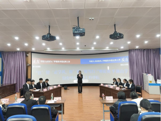 比赛伊始,24化工2班“你不对我队”与24化学2班“海底小纵队”就“年轻人应否为梦想放弃稳定工作”这一辩题展开激烈交锋。正方“你不对我队”的辩手们引用了诸多人物与现实案例,强调追梦之旅虽充满未知与挑战,却能激发个人潜能,实现自我价值,为社会带来创新与变革。而反方“海底小纵队”则从现实的角度出发,强调稳定工作为年轻人提供的不仅是经济上的安全感,更是人生经验的积累与职业发展的基石。