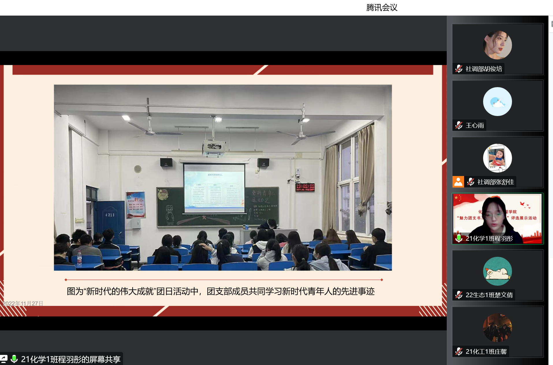 为加强基层团支部的影响力、战斗力、和生命力,进一步推进和活跃基层共青工作,推进共青团工作向深向实发展。2022年11月27日下午,我院召开了2022年度基层团支部书记述职评议会。此次会议采用线上形式进行,24个团支部参加了评选展示活动,各团支部书记参加述职评议。