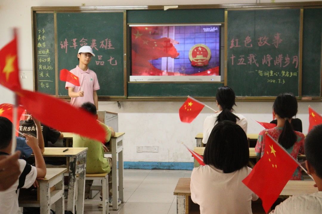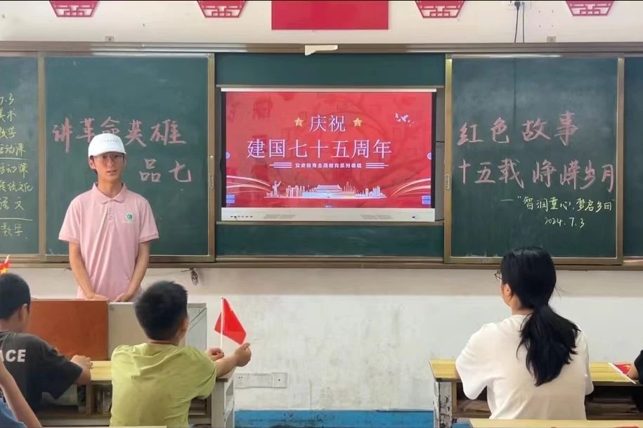 为深入学习贯彻习近平总书记关于传承红色基因、赓续红色血脉的重要指示精神,回顾新中国成立以来的壮丽历程,迎接新中国成立75周年的伟大时刻,7月3日,我院“智润童心,梦启乡田”社会实践服务团在鲁山县文智留守儿童学校开展“讲革命英雄红色故事,品七十五载峥嵘岁月”红色故事会。
