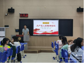 教工第一党支部书记李伟利带领支部党员一起学习“风雨苍黄百年路, 高歌奋进新征程”主题党课。