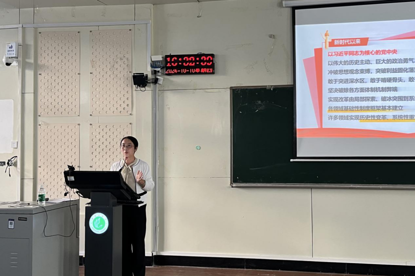 曹萍围绕深刻认识党的二十届三中全会的重大意义、深入学习领会习近平总书记在党的二十届三中全会上的重要讲话精神、全面准确理解《决定》提出的进一步全面深化改革重大举措等方面,对全会精神进行了系统解读。结合学院实际,她就如何学习贯彻全会精神提出了具体建议,鼓励学生们将学习成果转化为实际行动,勇于担当、积极作为,为学院事业的发展贡献力量。同时,她也希望同学们能够关注国家大事,不断提升自己的综合素质和爱国情怀。