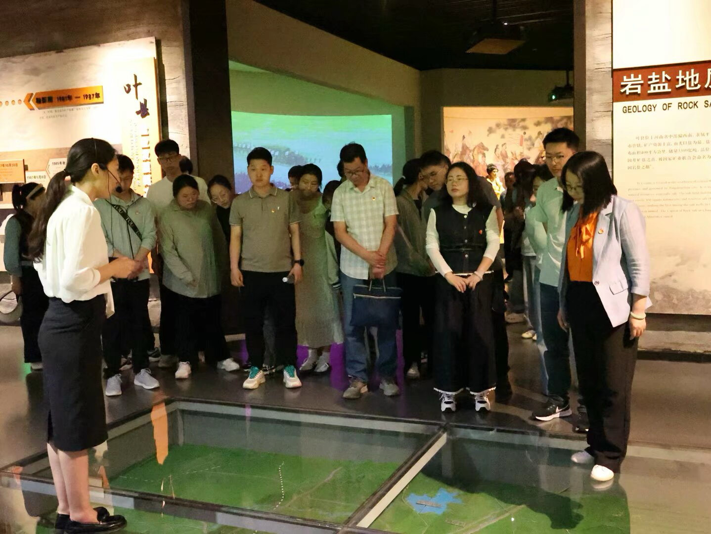 活动的第三站是叶县岩盐博物馆,这里系统展示了叶县盐业发展的历史脉络与现代盐化工产业的创新成果。师生党员在讲解员的带领下,通过实物展品、多媒体演示及互动体验,深入了解了叶县“中国岩盐之都”的产业地位与科技贡献。罗院长结合学科特色,讲解了岩盐的化学成分、开采工艺及在新能源、新材料领域的应用前景,引导师生党员将专业知识与地方产业发展相结合,激发服务地方经济的责任感。