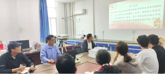 教工第一、第二、第三党支部书记带头领学,系统梳理了习近平总书记《弘扬伟大抗战精神,向着中华民族伟大复兴的光辉彼岸奋勇前进》、《在纪念中国人民抗日战争暨世界反法西斯战争胜利80周年大会上的讲话》等重要论述的核心要义。同时,结合《锲而不舍落实中央八项规定精神 推进作风建设常态化长效化》文件精神,各支部通过互动交流等方式,引导教师党员将理论学习成果转化为立德树人、科研创新的实际行动,筑牢为党育人、为国育才的使命担当。